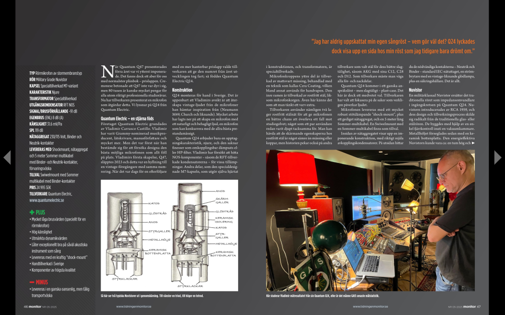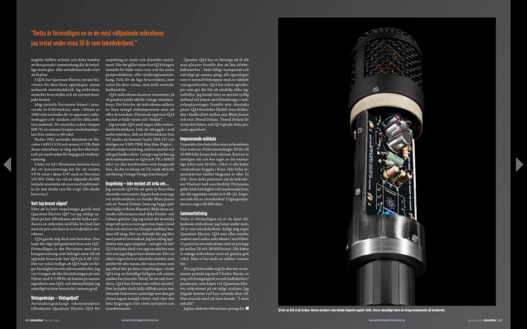Let us introduce the Swedish handmade Quantum Q24! It’s a small but powerful vintage-style tube microphone that will fulfill most of your recording needs. It features an M7 capsule, a custom transformer, a Nuvistor vacuum tube, and a NOS output capacitor. Learn more about this amazing microphone.